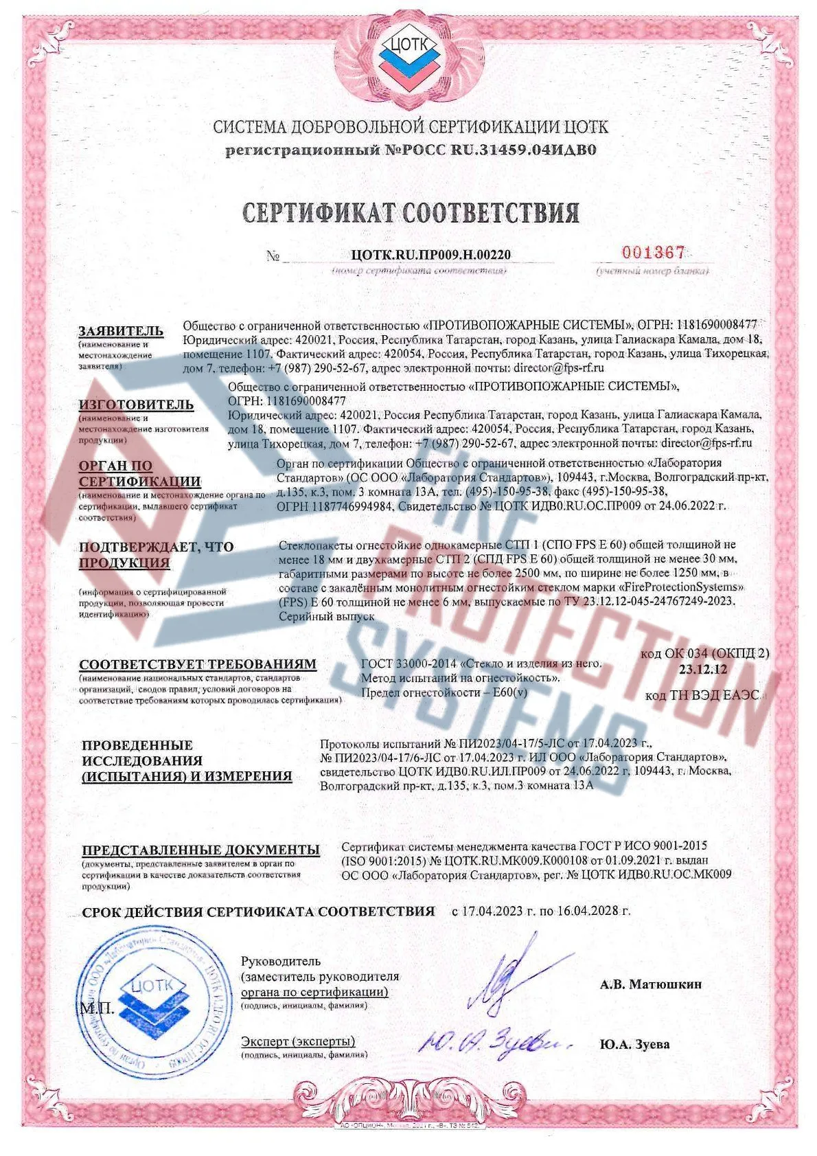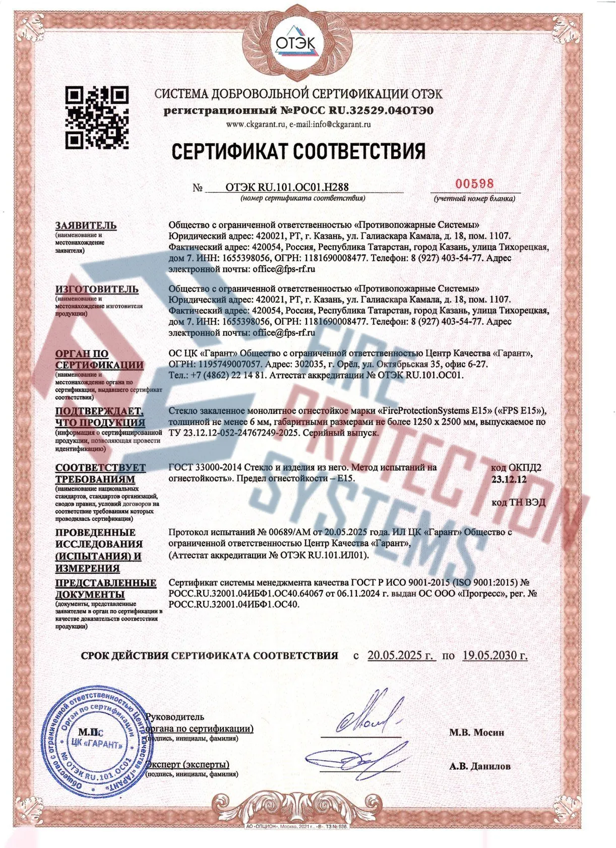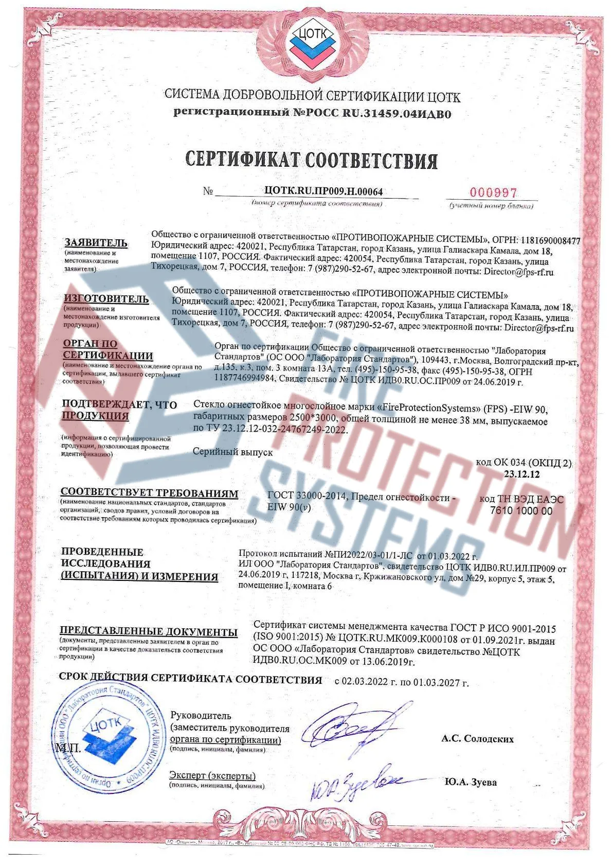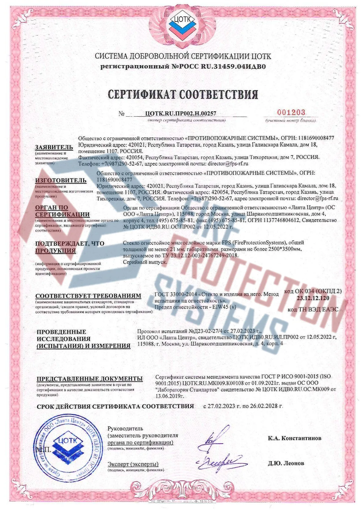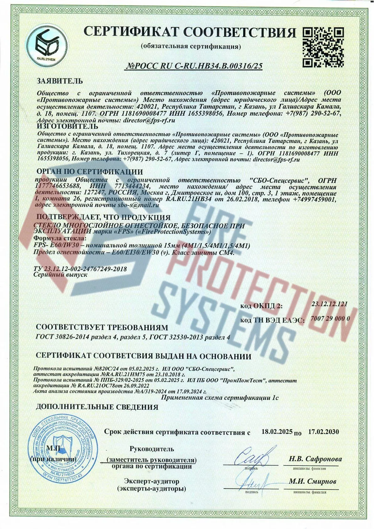 Противопожарное стекло в Орле от производителя «Fire protection Systems». Мы изготавливаем многослойные стеклопакеты из огнеупорного противопожарного стекла. В нашем каталоге вы найдёте противопожарные стёкла по ГОСТу EIW15-EIW60 с огнестойкостью от 15 до 60 минут. Изготовление противопожарных стёкол на заказ стандартных и нестандартных размеров. Продукция сертифицирована и доставляется по всей России. Узнайте как купить противопожарное стекло от производителя у специалиста компании «Fire protection Systems».