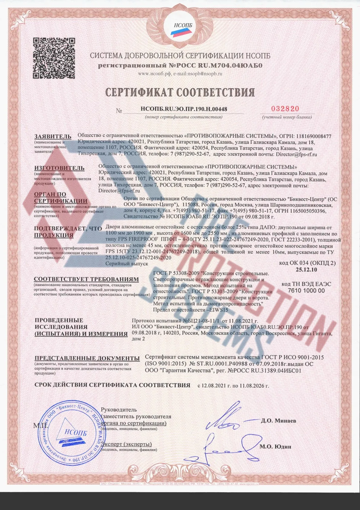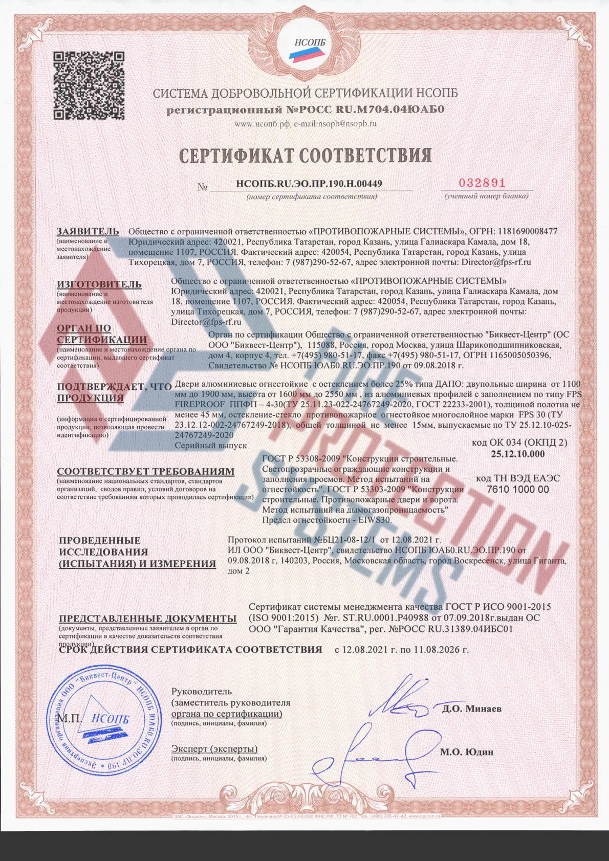 Противопожарные алюминиевые двери в Орле от завода-производителя «Fire protection Systems». Мы предлагаем глухие алюминиевые и светопрозрачные противопожарные двери любых размеров. В нашем каталоге представлены противопожарные двери от EIW15 до EIW 60 с тёплым и холодным профилем. Наши товары сертифицированы и полностью соответствуют ГОСТ. Также мы предлагаем доставку по всей России и установку противопожарных дверей из алюминиевого профиля на объекте. Закажите консультацию специалиста «Fire protection Systems», чтобы узнать, как купить противопожарные двери остекленные алюминиевые по лучшей цене.